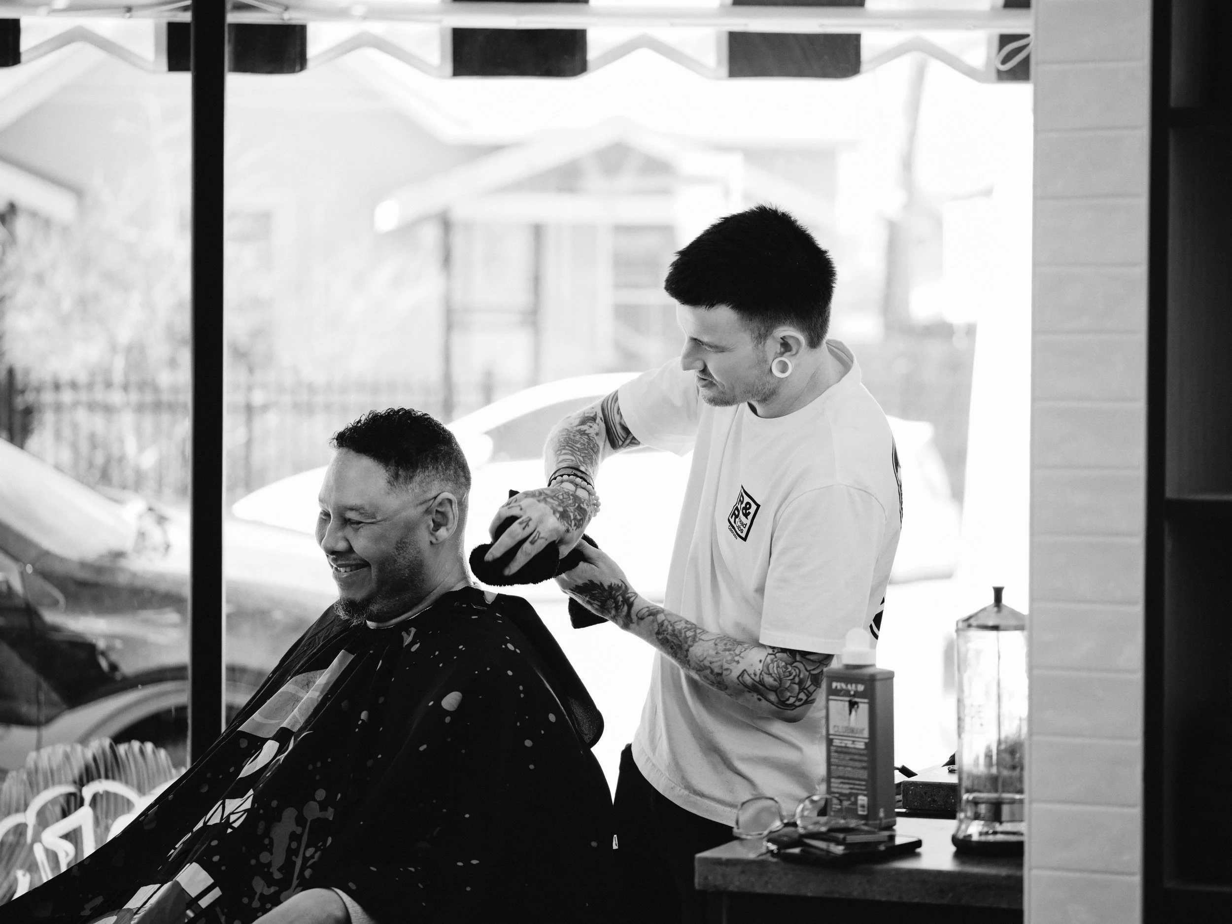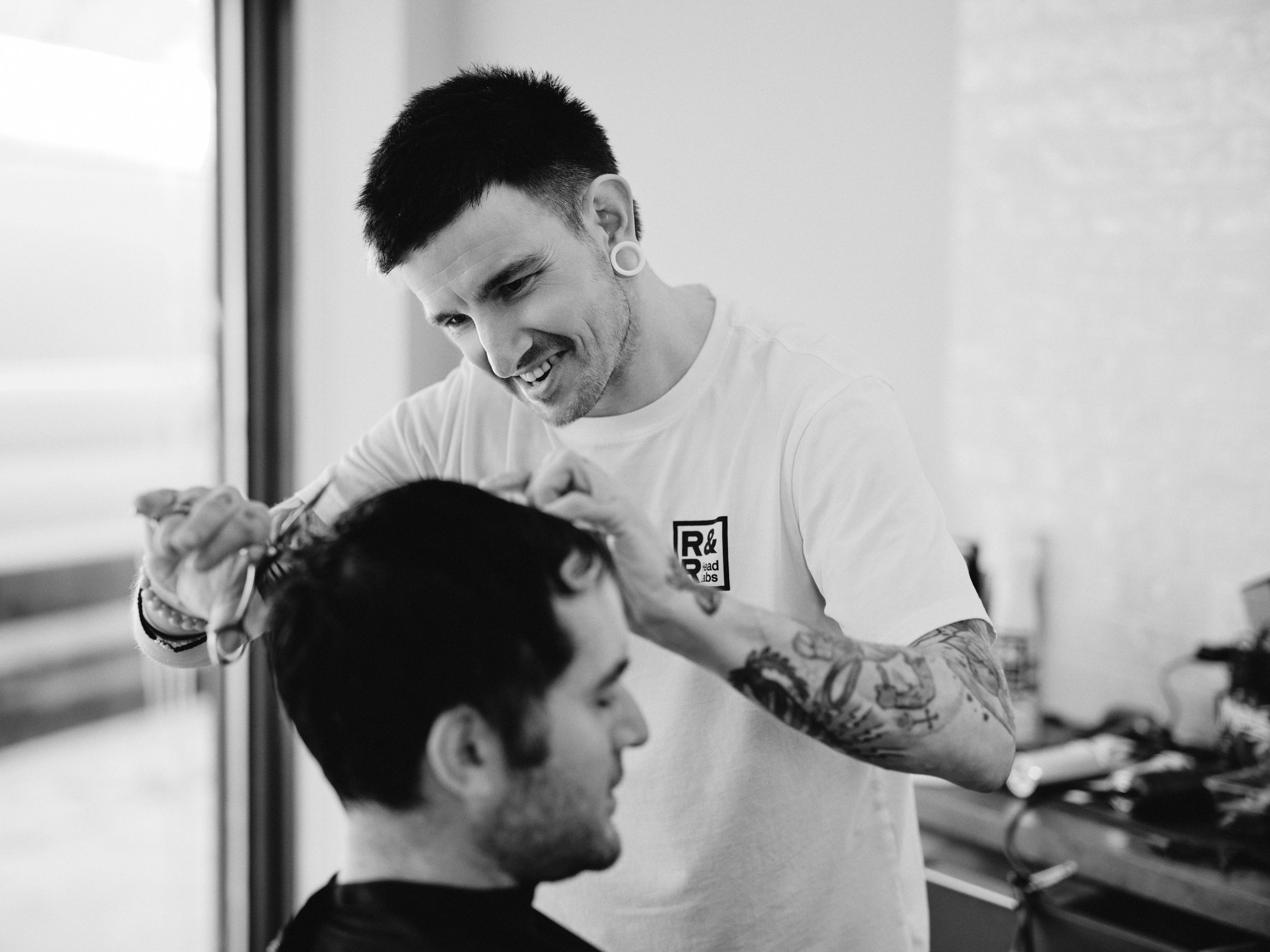 R&R Head Labs is more than a barbershop. Their model is built around second chances. Creating opportunity, employment, and a path toward barber licensing for people rebuilding their lives. That kind of mission changes the energy on set before a camera ever comes out. There’s a different level of purpose in the room when the work itself is tied to something bigger than just aesthetics.
