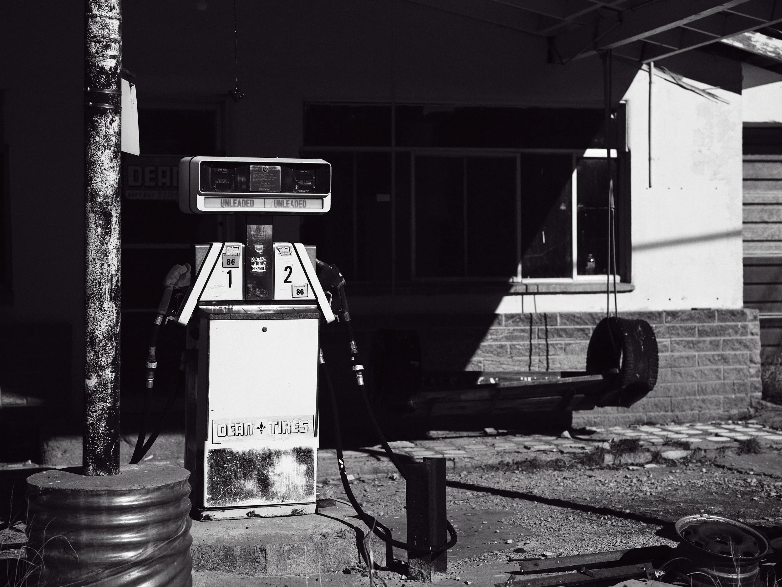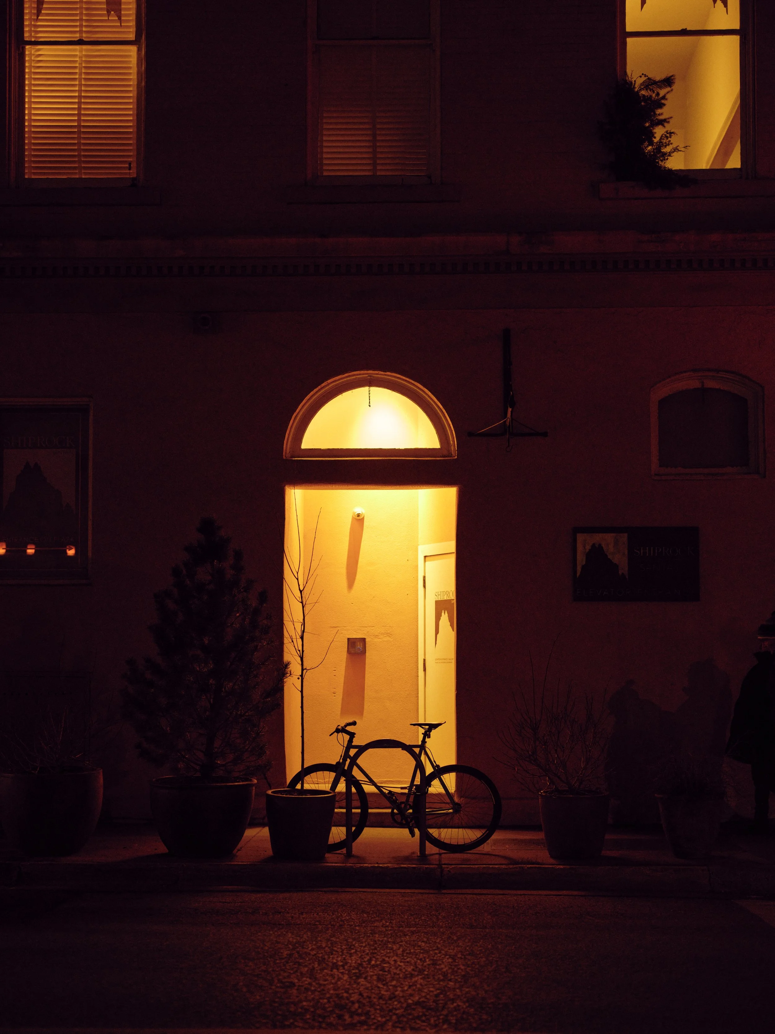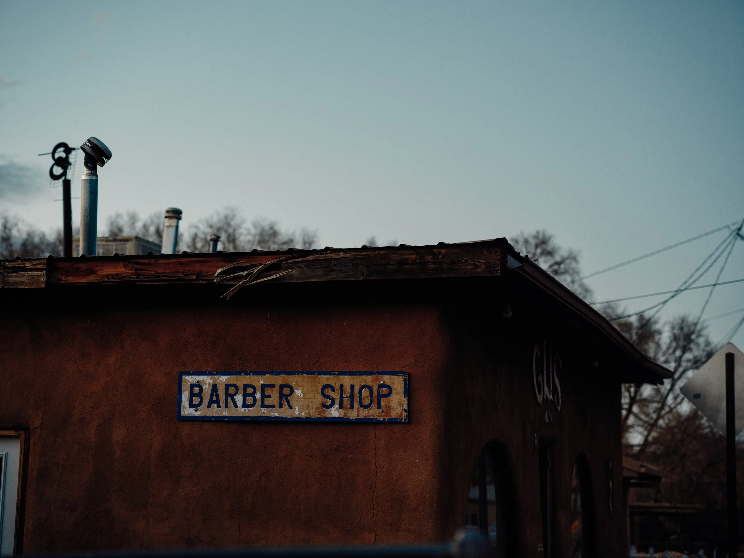 I wandered with a camera the way I used to. Attentive, unhurried. Without constraints, I found myself responding to light again. A doorway glowing amber against the cold night air. A barber shop sign fading into dusk. The quiet geometry of adobe walls holding the last light of day. Shadows stretching long across desert ground. I wasn’t thinking about usage or category or deliverables. I was just seeing. And that felt like oxygen.